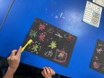 The fun didn’t stop in the forest! Back in the classroom, Year 2 continued learning with a range of creative activities. They made timelines of the Gunpowder Plot to understand the sequence of events, played a thrilling game where they had to finish a Guy Fawkes picture before the barrel exploded, and even created sparkling firework artworks to celebrate Bonfire Night.