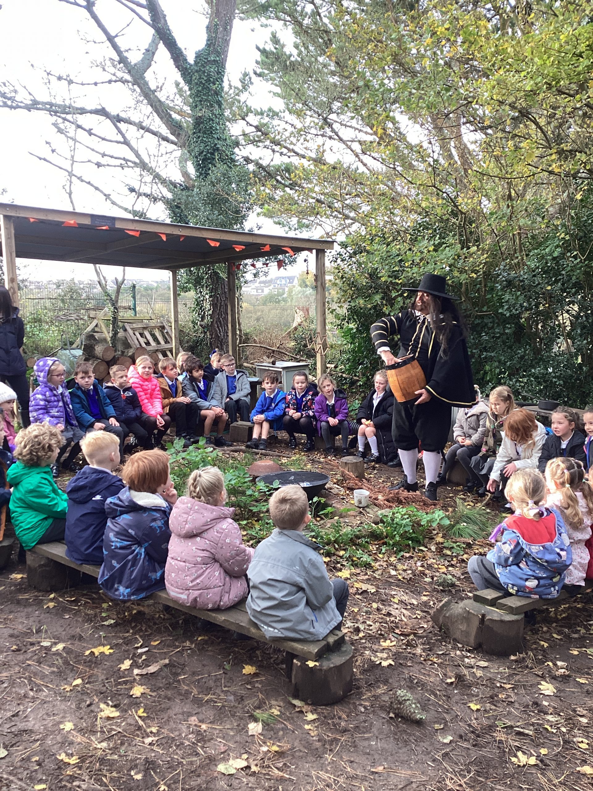 The session was full of excitement and curiosity. Pupils listened carefully, asking thoughtful questions about the events of 1605, and enjoyed hearing history brought to life in the forest. They learned not just the facts, but also about courage, consequences, and the importance of working together—just as the conspirators did, for better or worse!