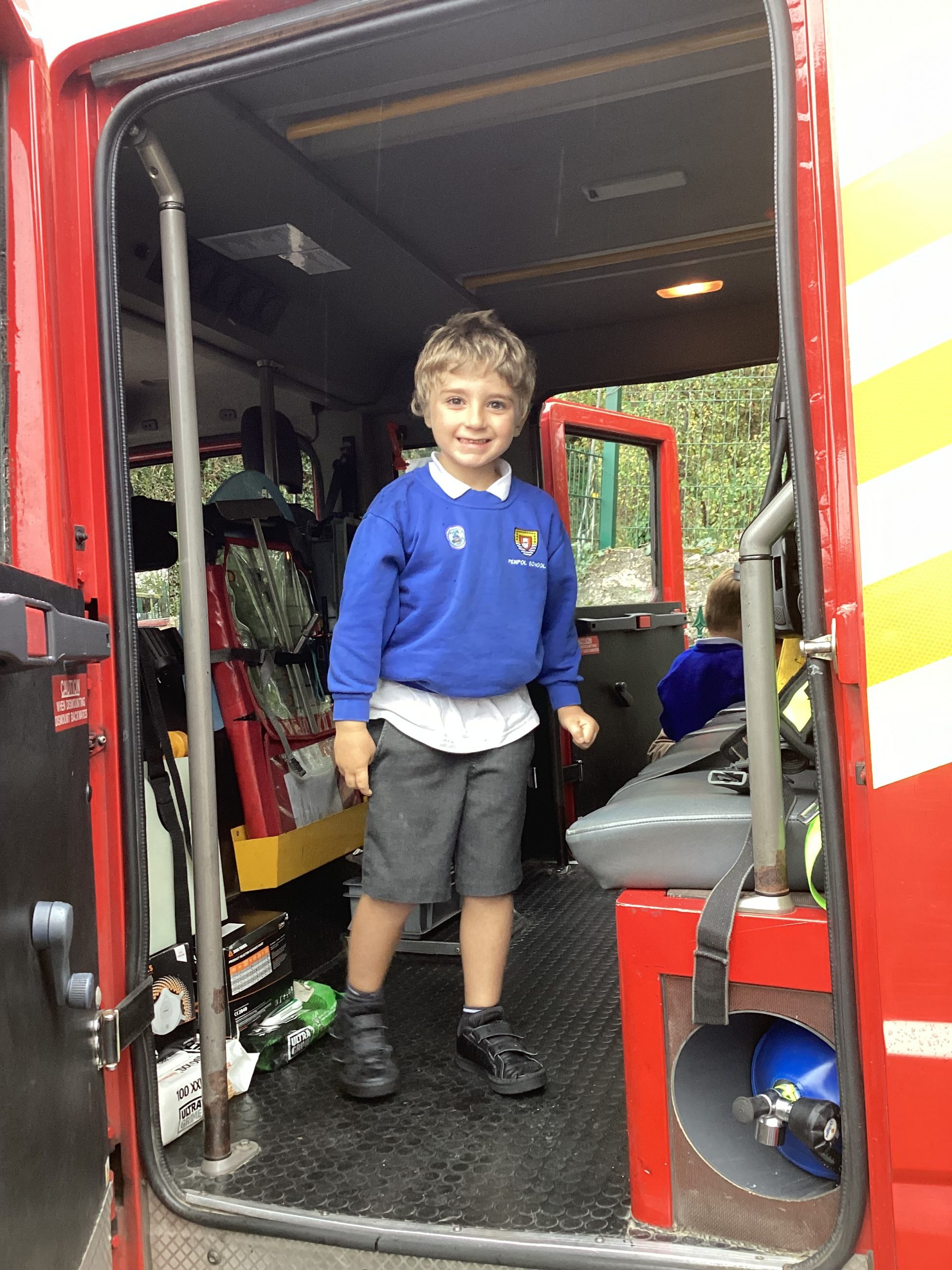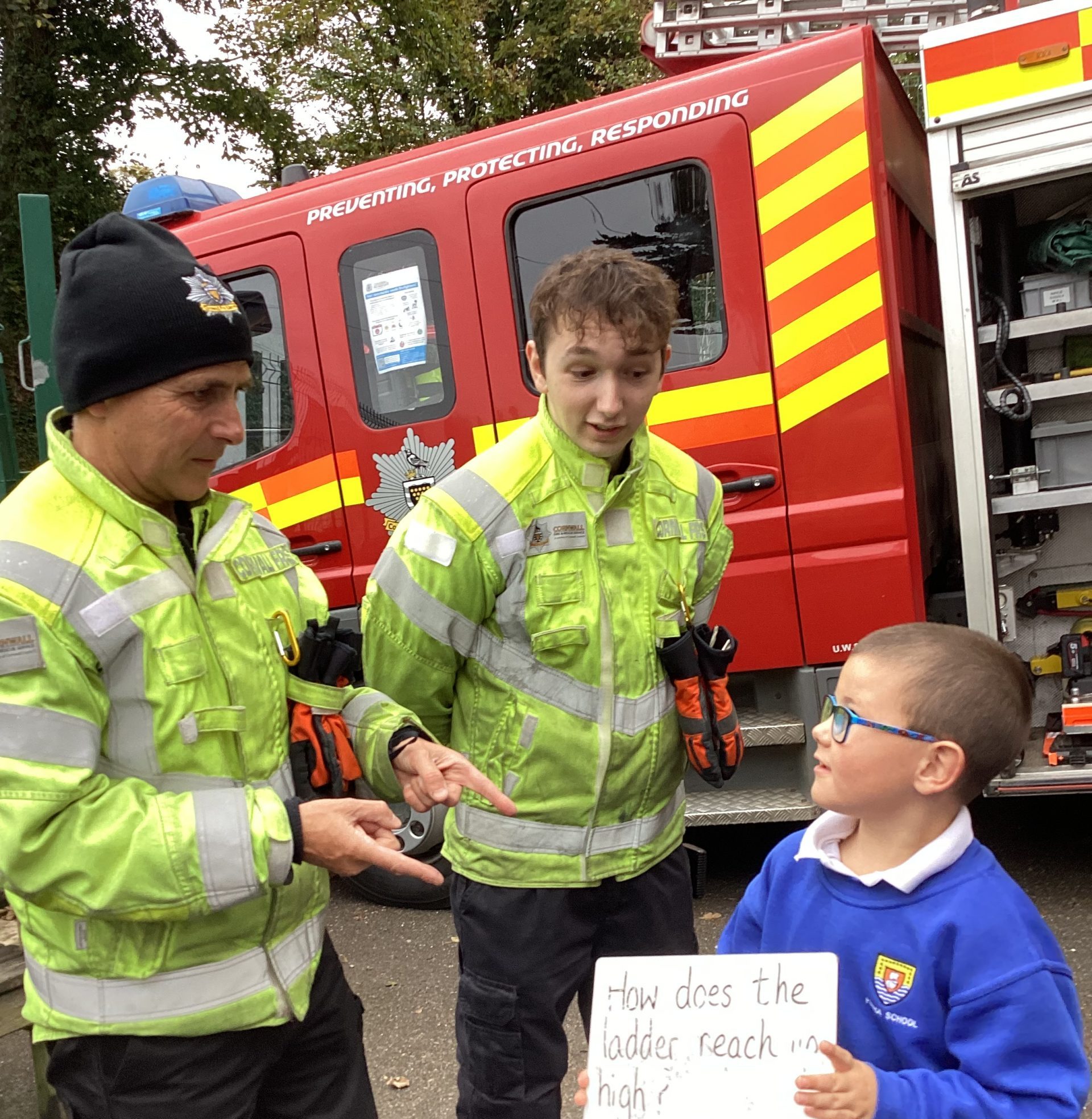 After a real-life emergency our two local Firefighter heroes re-arranged their visit to come to visit Year 1 on the last day before half-term.
