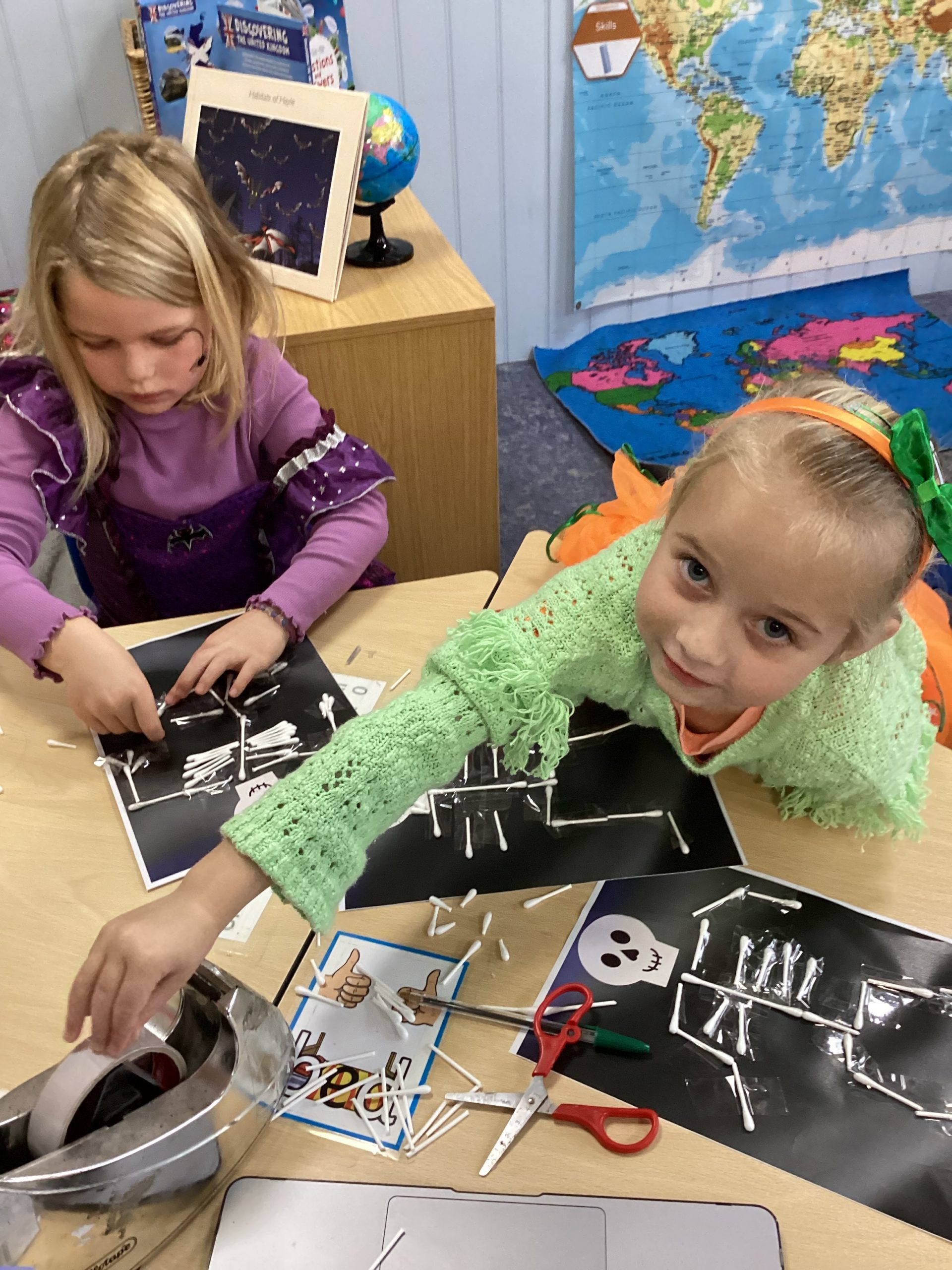 Our day began with listening to Funny Bones, which inspired the children to design and make their very own skeletons. Soon after, the class got hands-on with some creepy creativity, building spooky skeletons of all shapes and sizes.