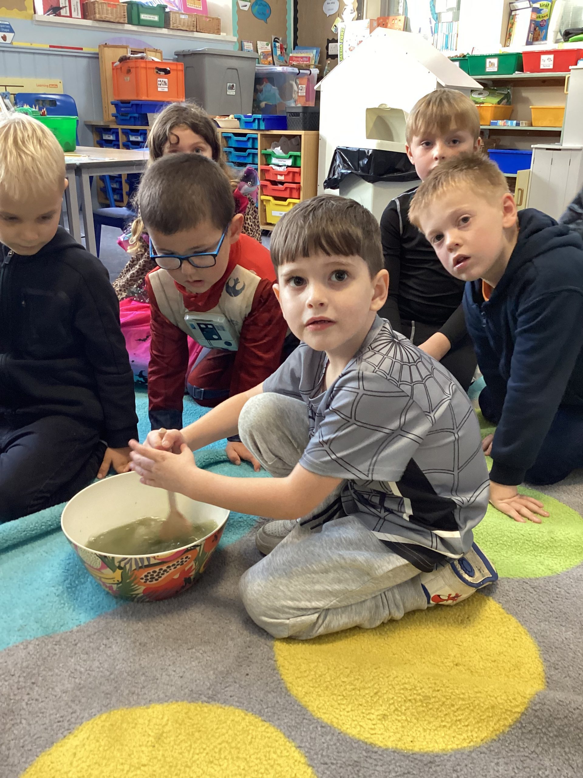 The day also included a practical maths activity where the children followed a spooky recipe, carefully measuring and mixing ingredients like “half a cup of inky slime” and “a full cup of fairy tears”—proving that maths can be both fun and deliciously creepy!