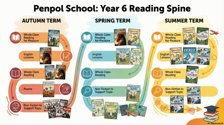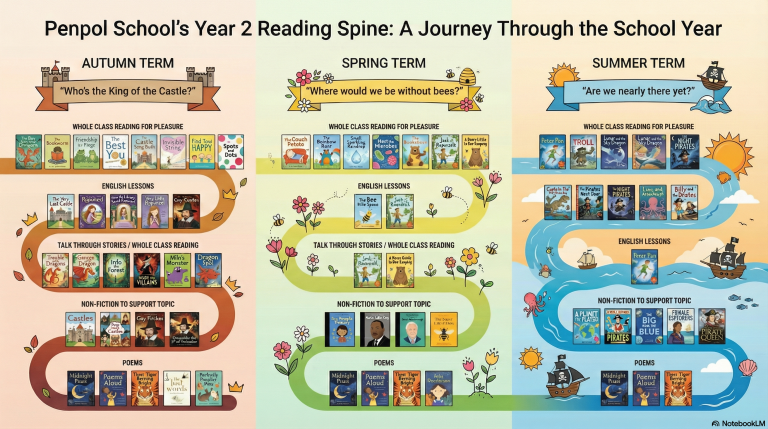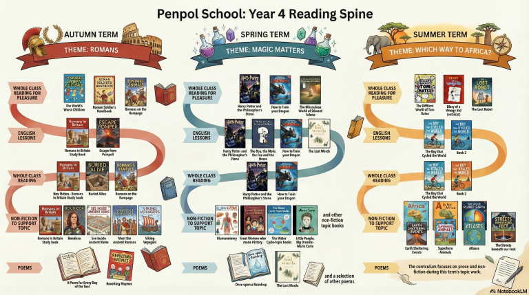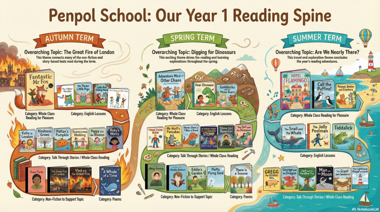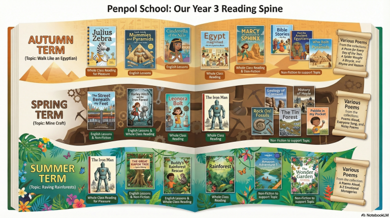 All of these well-delivered, clearly assessed elements of reading lead to children at Penpol being engaged, enthusiastic and avid readers. Children at Penpol are well-equiped to enter the next stages in their learning, feeling confident to apply their skills across the broad curriculum.