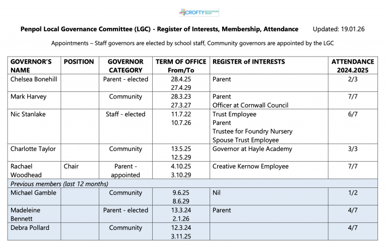 Our school has a Local Governance Committee (LGC) – this is a committee of the Board of Trustees. Our Local Governors are all volunteers and have an important role in supporting and challenging our school leaders to achieve the best possible outcomes for every child in the school.