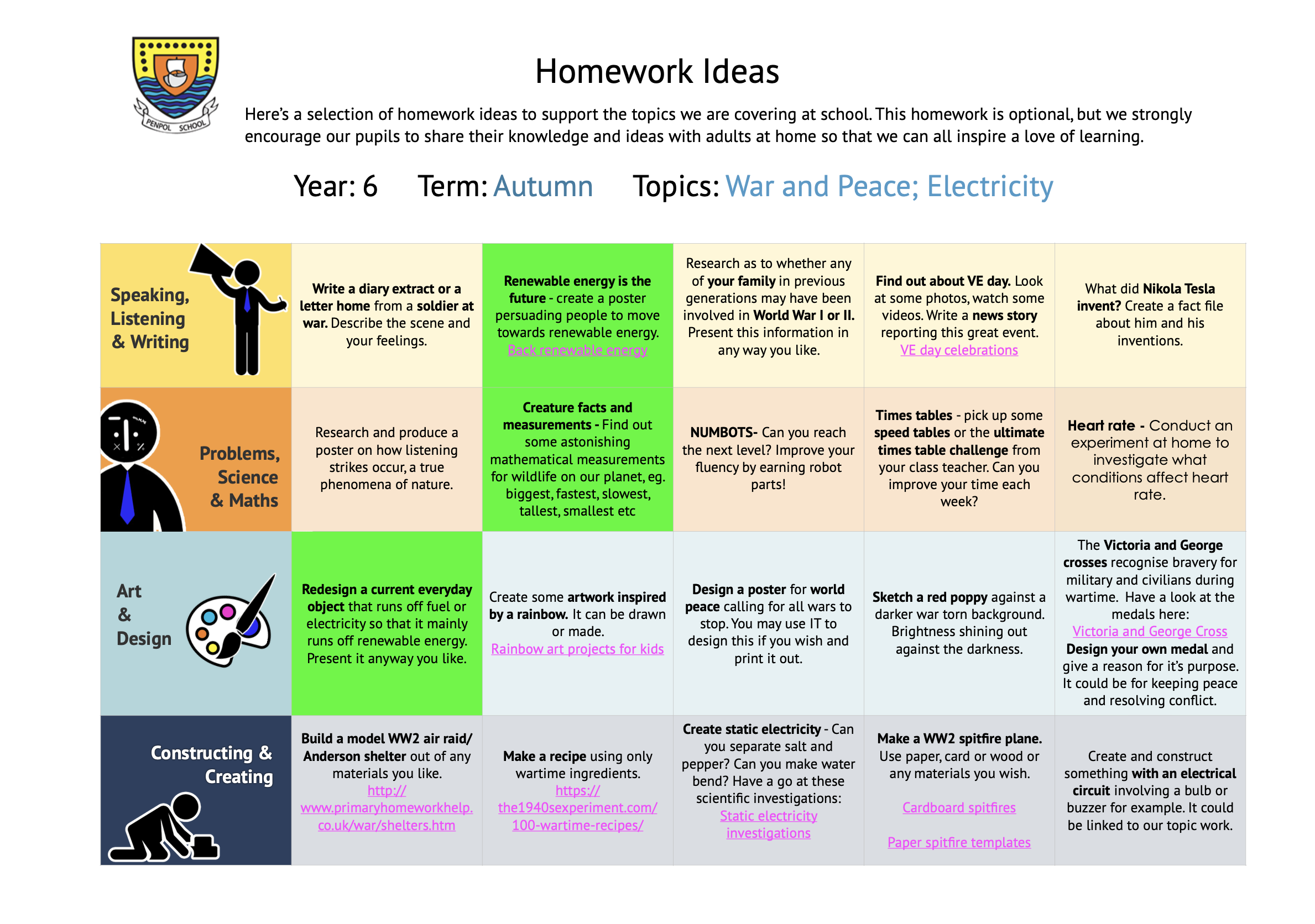 You can also find our Home Learning grids for fun and hands-on activities that link to our topics for your child to complete at home.